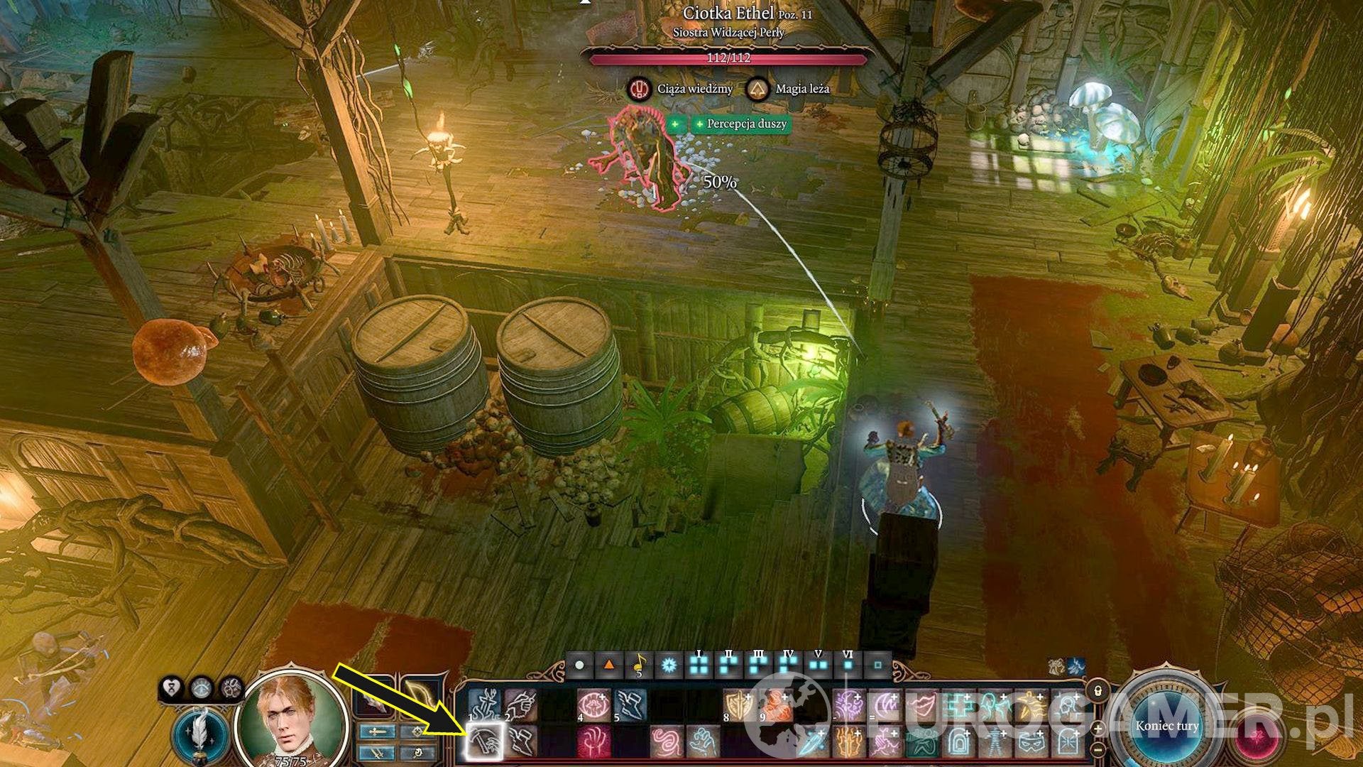En la siguiente sala te enfrentarás al grupo&agon; Héroes controlados por la bruja źmę. &Puedes evitar herć y goćć a través de la segunda puerta de madera donde reside la bruja. Joż al inicio de la pelea tirarć & agon; Con el elixir perdido de Wiedm.