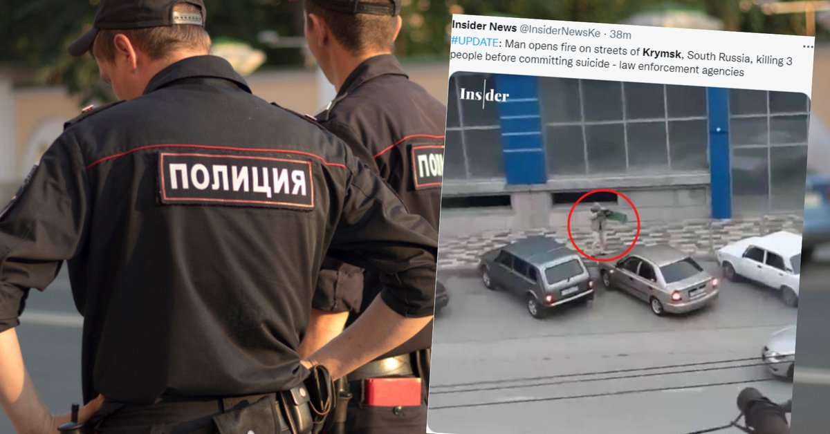 Según la agencia de noticias Interfax, el jefe del servicio de prensa del Departamento Principal del Ministerio del Interior de Rusia, Alexander Ronov, informó que el tirador era residente de Krymsk, nacido en 1956. Aprox. tiempo. 17 hora de Moscú en uno de los centros médicos de Krymsk, ubicado en la calle Komarova, dos empleados de esta instalación fueron baleados. Ronov agregó: «Luego salió a la calle y abrió fuego contra los transeúntes».