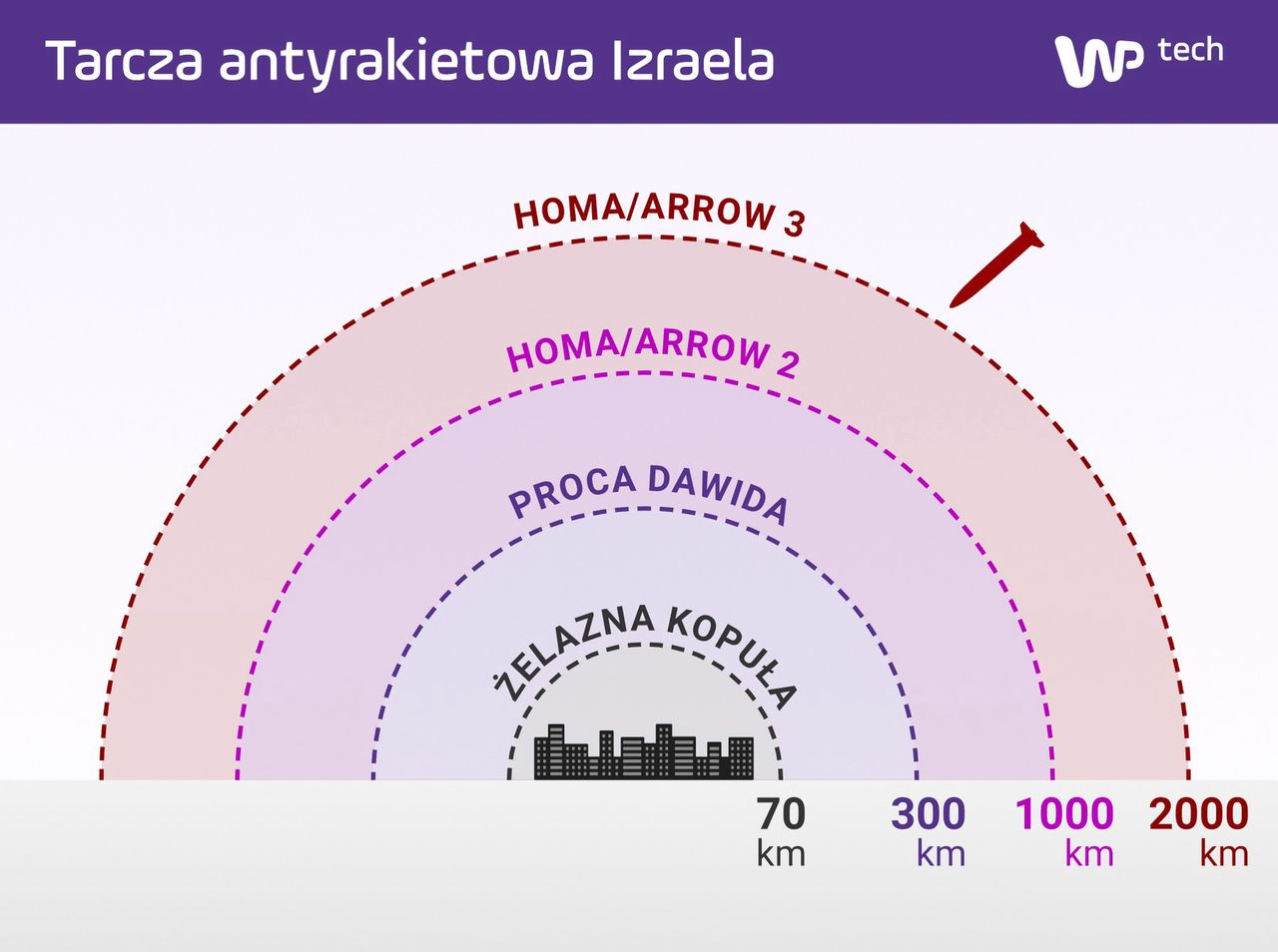 Por encima del campo de tiro Iron Dome opera el David’s Sling, un sistema equipado con misiles Stoner, el equivalente funcional del sistema Patriot estadounidense. Sobre David’s Sling hay un área protegida por los sistemas antimisiles Arrow 2 y Arrow 3, conocidos colectivamente como Se llama sistema Homa. (hebreo: pared).