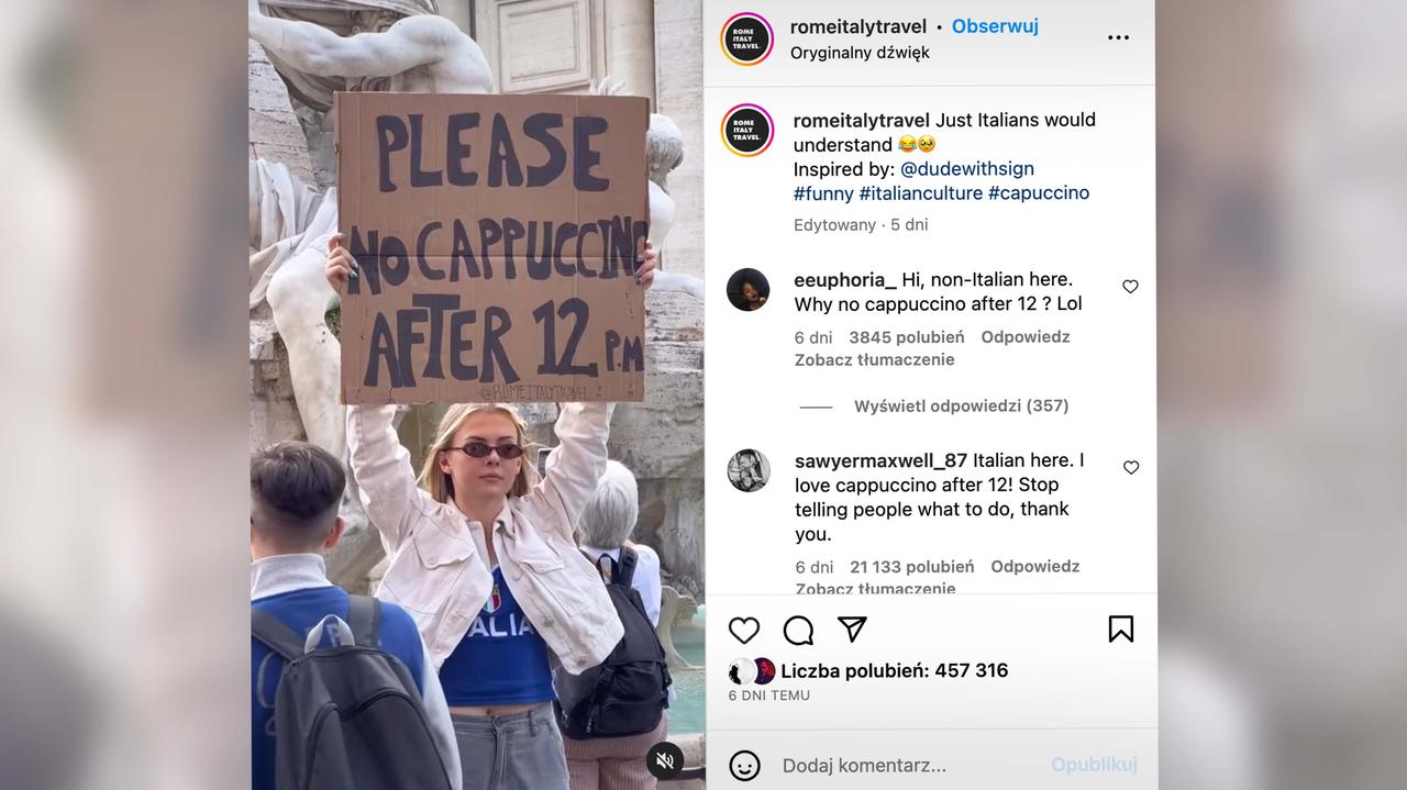 “Por favor, no capuchino después de las 12:00” – una joven caminaba por las calles de Roma con un cartel con este lema. Su extraordinario trabajo fue recibido con aplausos de meseros y cantineros en los lugares aledaños. Un video de su caminata se volvió viral y obtuvo más de 450,000 me gusta en solo seis días. ¿De qué se trata todo este trabajo? Nosotros explicamos.