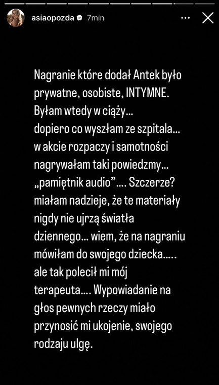En las cuentas de Instagram de Joanna Opozda ha habido respuestas al material revelado. Escribí que el video compartido era una recomendación de un terapeuta.