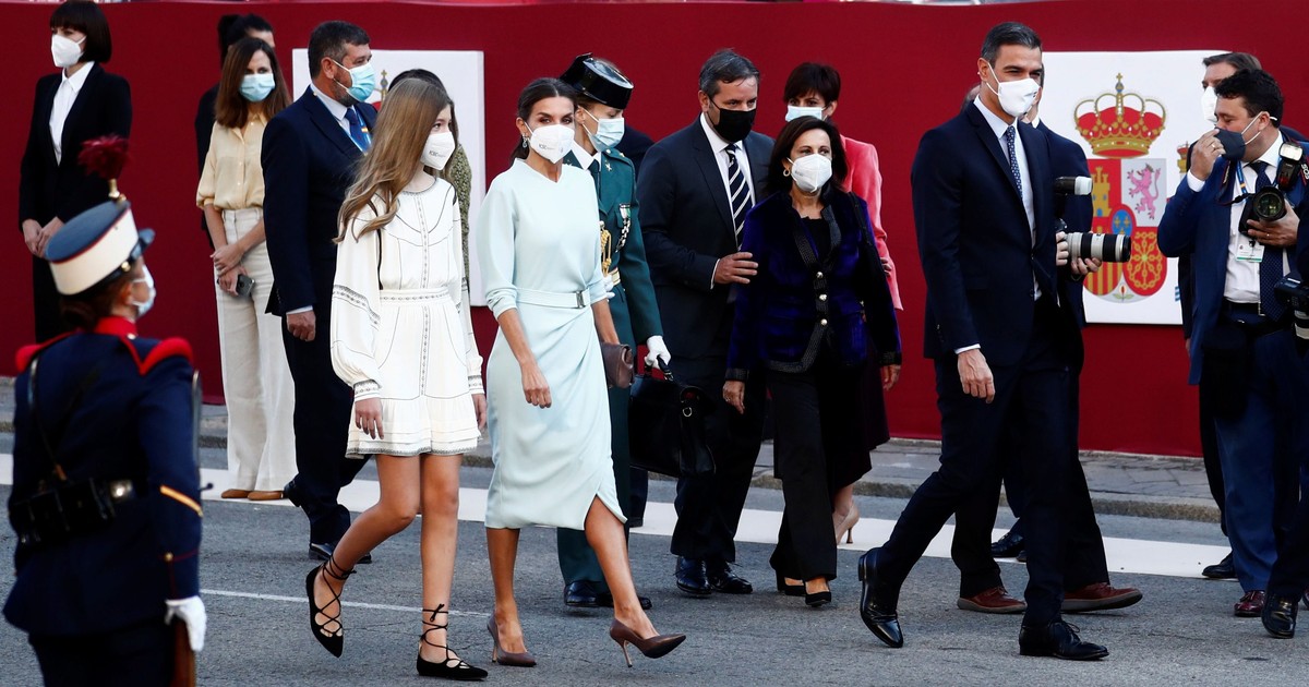 La siguiente en la fila al trono de España es la menor de las dos hijas de Felipe y Leticia. La llevaron al desfile en un automóvil diseñado para ella y se unió a sus padres en la escena. Los comentaristas notaron que dirigió sus primeros pasos hacia el rey, no hacia la reina. Esto significa interpretar el papel de una princesa de 14 años.