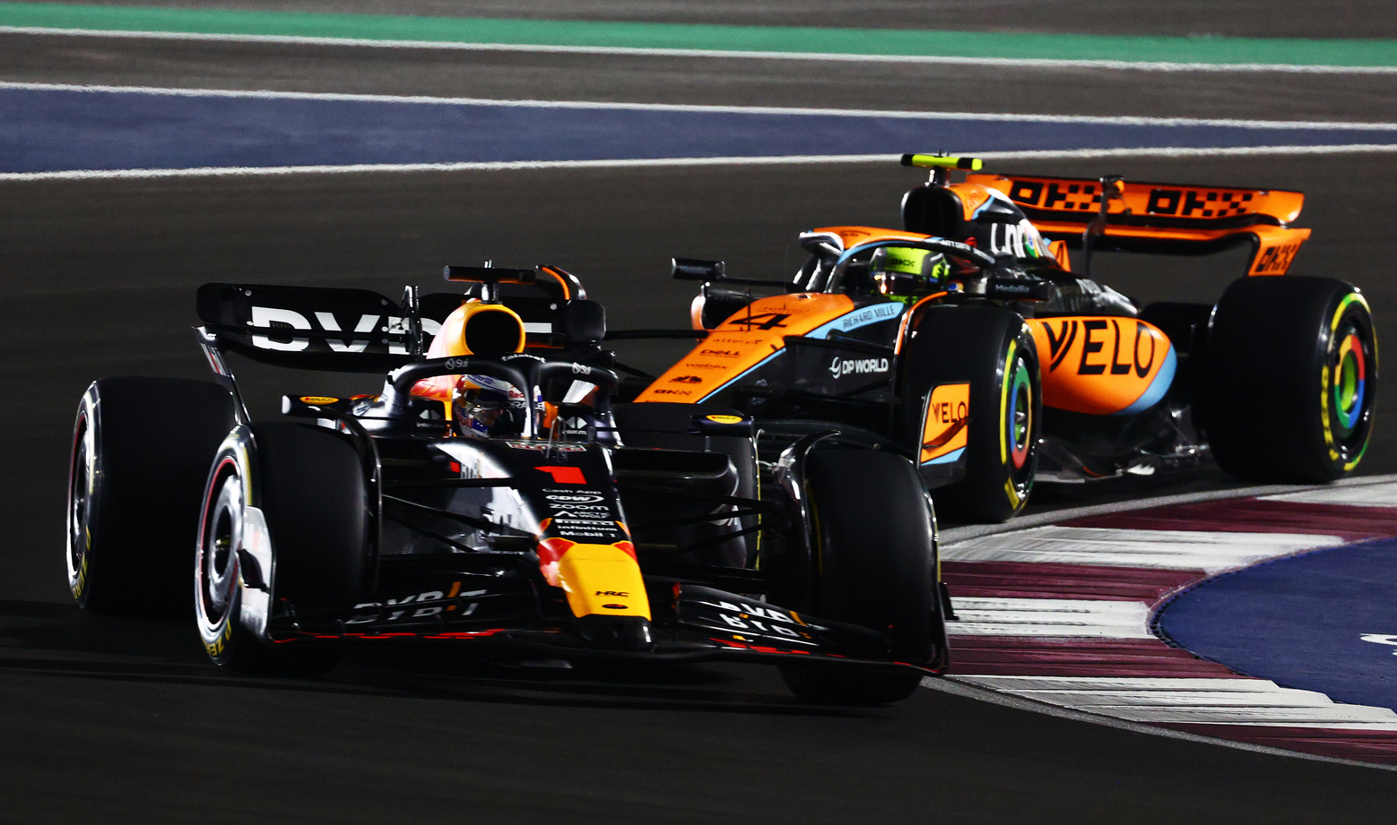 Material de prensa / Red Bull / En la foto: Max Verstappen frente a Lando Norris