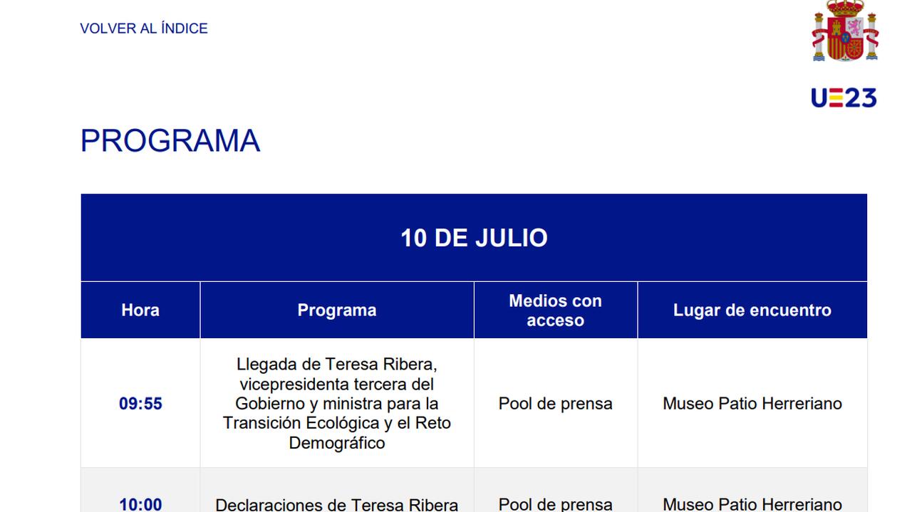Parte del programa de la reunión de ministros de Medio Ambiente de la Unión Europeapresidencia-española.consilium.europa.eu