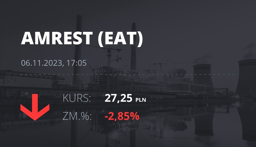 El lunes 6 de noviembre, Amrest (EAT) empezó a cotizar a 28,4 PLN, es decir, un 1,25%. Más que al cierre de la sesión del viernes, cuando el mercado fijó el precio de la acción en 28,05 PLN. A las 09:16 el precio de la acción subió a 28,5 PLN, luego a las 16:07 cayó a 27,2 PLN y al cierre subió a 27,25 PLN.