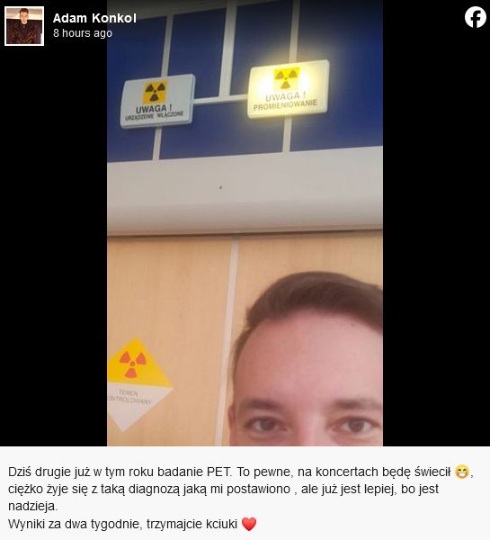 En abril, Adam Konkol anunció que padecía cáncer de pulmón. Actualmente se le están realizando más pruebas después de la radioterapia. No se le recomiendan otras formas de tratamiento. “Brillaré en los conciertos”, leemos en la nueva entrada del músico.