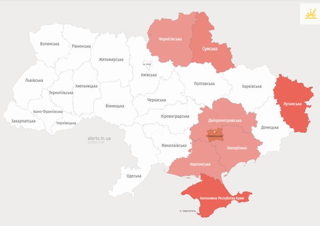 Según informó la Fuerza Aérea de Ucrania, los drones “Testigos” vuelan hacia las regiones de Chernihiv, Zaporizhzhia y Dnipropetrovsk. Existe la amenaza de un ataque con misiles en las provincias de Sumy y Kherson.
